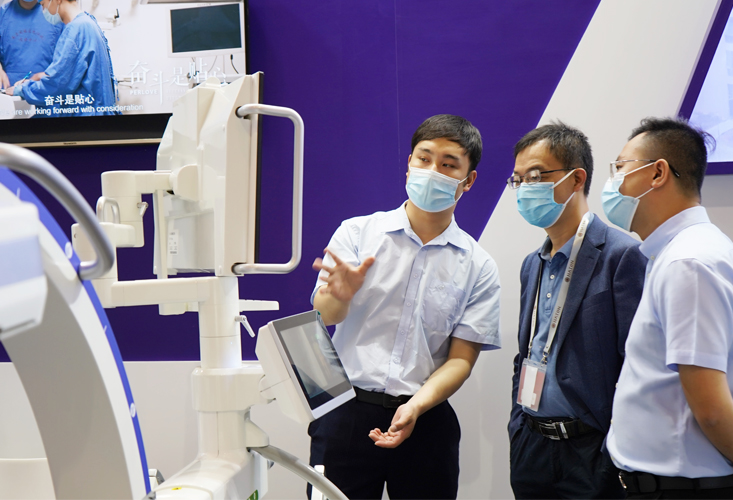 大會(huì)主席、中國(guó)醫(yī)師協(xié)會(huì)骨科醫(yī)師分會(huì)會(huì)長(zhǎng)張英澤院士、有名骨科專家于秀淳教授等多位專家親臨我司的展臺(tái)參觀指導(dǎo),共同探討我司新的科技成果,專家們肯定我司在C形臂領(lǐng)域取得的地位,對(duì)新上市的高端平板3D C形臂和一體化平板小C的臨床操作和圖像質(zhì)量給予了高度評(píng)價(jià)。