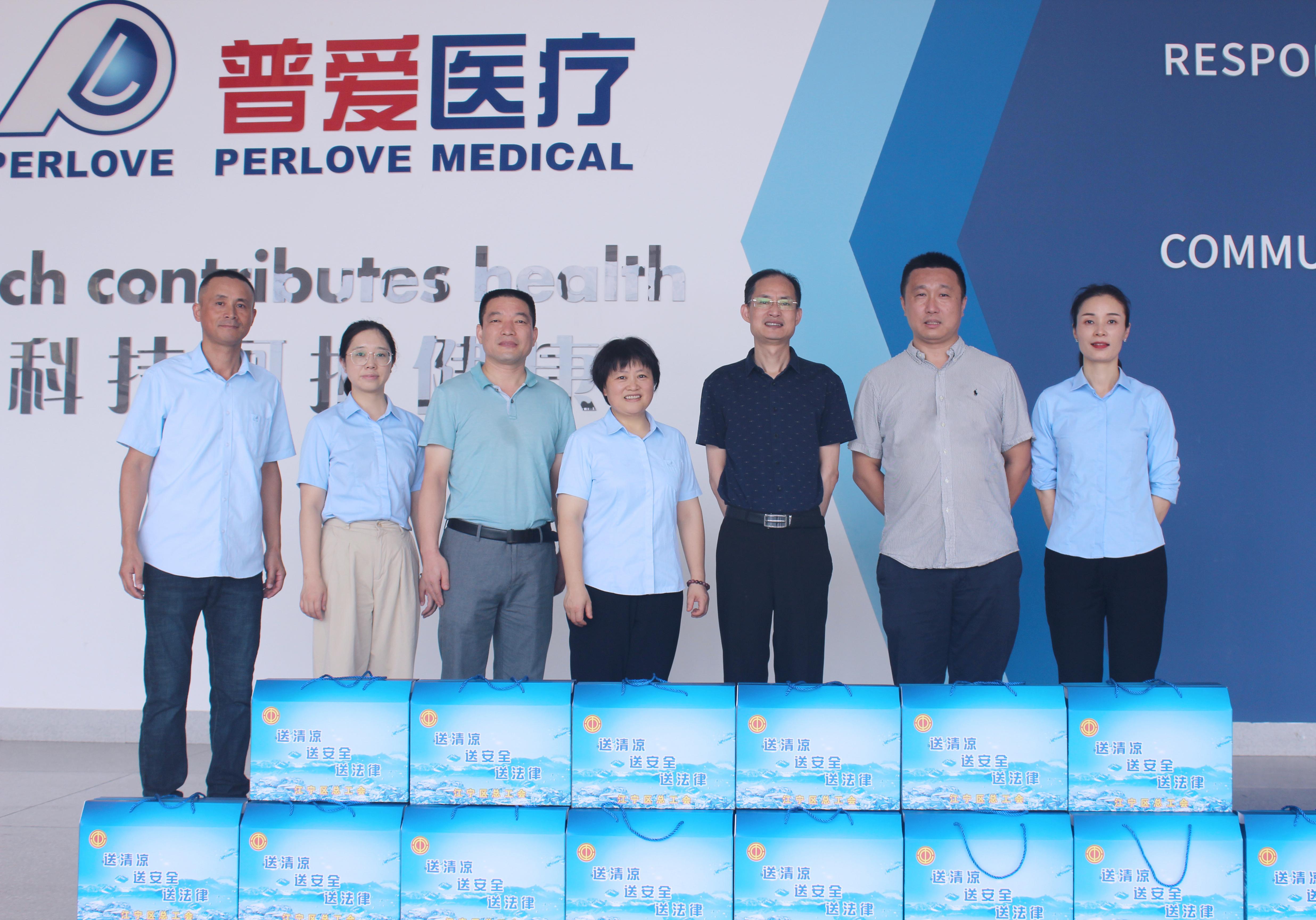 8月5日,江寧區(qū)總工會(huì)徐靜副主席、高新區(qū)總工會(huì)劉捷常務(wù)副主席一行6人來到普愛醫(yī)療,為一線的生產(chǎn)員工送來了防暑降溫清涼禮包和可樂、蘇打水等解暑飲品,向普愛醫(yī)療總經(jīng)理龔炯女士親切的詢問員工的高溫作業(yè)情況。