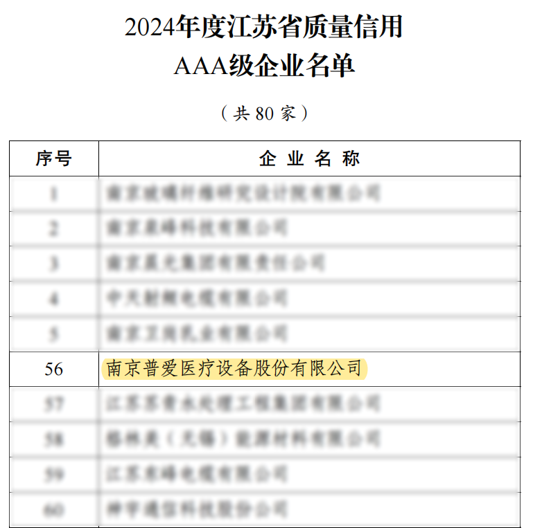 11月25日,江蘇省市場(chǎng)監(jiān)管局發(fā)布了《2024年度江蘇省質(zhì)量信用AAA級(jí)企業(yè)公示名單》,普愛醫(yī)療以優(yōu)秀的產(chǎn)品質(zhì)量、穩(wěn)定的運(yùn)營能力及良好的社會(huì)責(zé)任實(shí)踐成功入選。