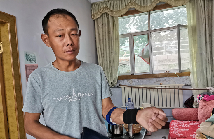 42歲的毛偉強,是山東省萊州市祚村鎮(zhèn)·大臺頭村的一個果農(nóng),家里只有三口人。他是一個嚴重的尿毒癥患者,曾下過兩次病危通知,目前一個星期要去醫(yī)院透析3次,妻子的精神時而清醒時而糊涂,家里的重擔(dān)都壓在他一個病人身上。更令他心痛的是他心愛的女兒,也是一個尿毒癥患者,今年才只有15歲,正在上初三,學(xué)習(xí)成績特別優(yōu)秀。他的母親也因尿毒癥剛?cè)ナ啦痪?,本該陽光幸福的家庭,卻被命運捉弄著。他透析的膀臂,常年纏著繃帶,沒有辦法,他必須帶著傷口去干活,去掙錢,為他的家人撐起一片天。